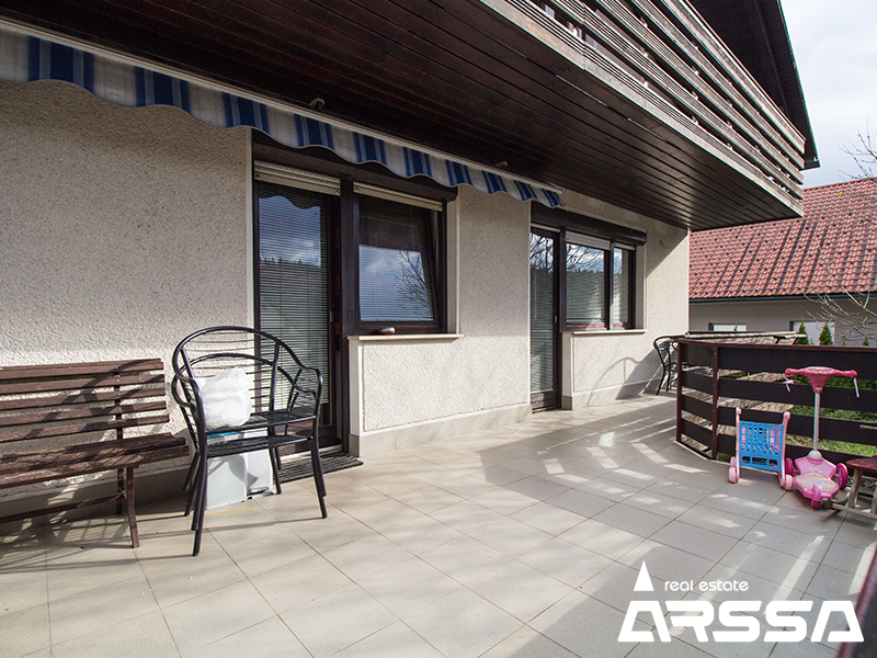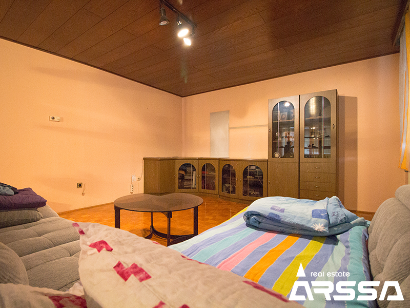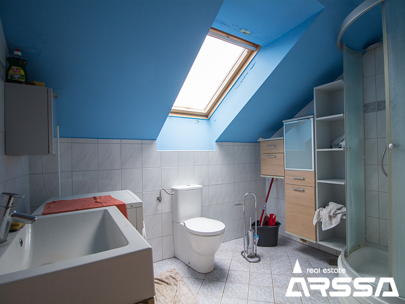 Hiša je v dobrem stanju in primerna za takojšnjo vselitev. Funkcionalna razporeditev prostorov omogoča lagodno bivanje ene ali dveh družin. V pritličju se nahaja vetrolov, stopnišče, hodnik, večja spalnica, otroška soba, kopalnica s kadjo in pregrado za WC, velika dnevna soba z jedilnico, ločena kuhinja z manjšim jedilnim kotom ter izhodom na odprto teraso (dostop tudi z dvorišča). V zgornjem nadstropju se nahaja stopnišče z manjšo shrambo, velika dnevna soba z jedilnico in izhodom na podolgovat balkon, ločena kuhinja, večja spalnica, otroška soba in kopalnica s tuš kabino. V kleti hiše se nahaja hodnik, kopanica / pralnica s tuš kabino, soba za shranjevanje, kotlovnica s cisterno za olje v ločenem prostoru in daljša garaža za 2 avtomobila. Dostop do kleti je omogočen preko garaže z daljinskim odpiranjem vrat ali notranjega stopnišča pritlične enote. Ogrevanje hiše je na kurilno olje. Poleg hiše stoji tudi dodatna samostojna garaža z daljinskim odpiranjem vrat v velikosti 31 m². Na dvorišču je mogoče parkirati še 2 avtomobila. Okolica hiše omogoča tudi dovolj prostora za poletno druženje na prostem. Hiša se prodaja neopremljena. Vredno ogleda.